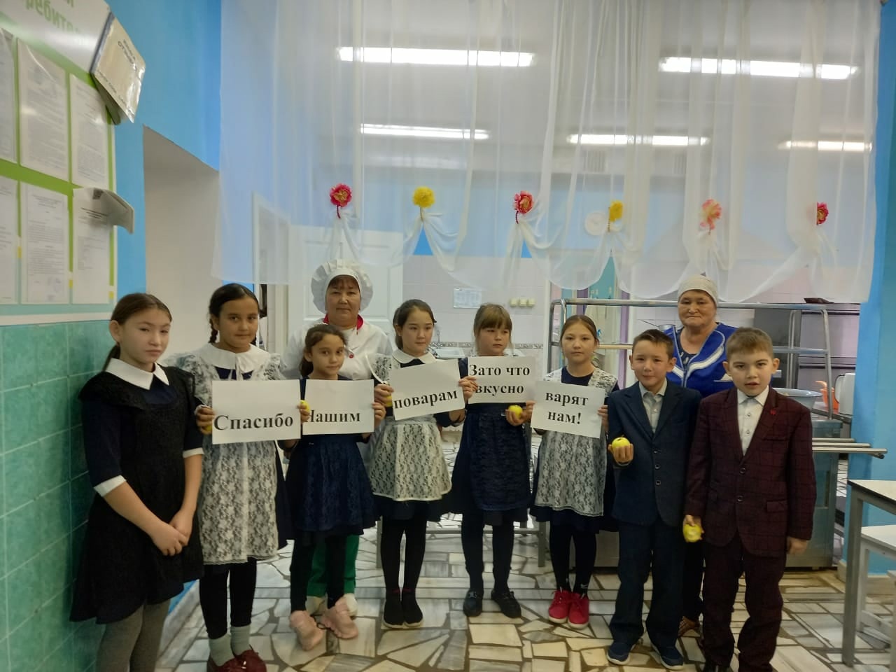 В целях максимального привлечения интереса к рабочей профессии повара , просветительской работы с родителями обучающихся, а также формирования у обучающихся основ культуры здорового питания МОБУ СОШ с.Алькино присоединяется к акции "Спасибо нашим поварам!" В рамках акции 1-4 классы провели конкурс рисунков "Моё любимое блюдо ",5-8 класс приняли участие в конкурсе домашних блюд "Здоровый завтрак ".А также поговорили о пользы еды для организма.